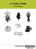 The 15th of the month is upon us and that means a new Spotlight of Savings at A Muse Studio. This month has some great stamp sets and a lovely autumn harvest colored paper pack (4 sheets each of Toffee, Squash, Orange, Currant, and French Roast). Check it out! And here are the 5 sets that are on sale also--Autumn Leaves, Fresh Foliage, Calendar Fun, Harvest Blessings, and Perfectly Polished.And of course, I have to share at least one creation with you. And please don't laugh at my crooked cards. My scanner is persnickedy and if a card is the slightest bit crooked on the scanner bed it will exaggerate it in the scan. I promise that my cards are little more lined up in person.