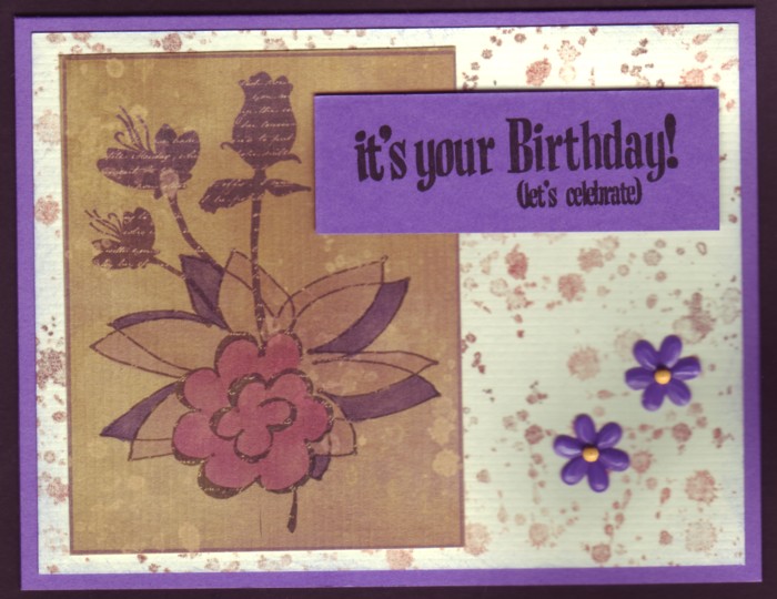 The Fine Print: everything by by Club Scrap except the plastic purples flowers (Hero Arts?) and the mini mini-brads (unknown), "It's your birthday" from an older Club Scrap Kit.